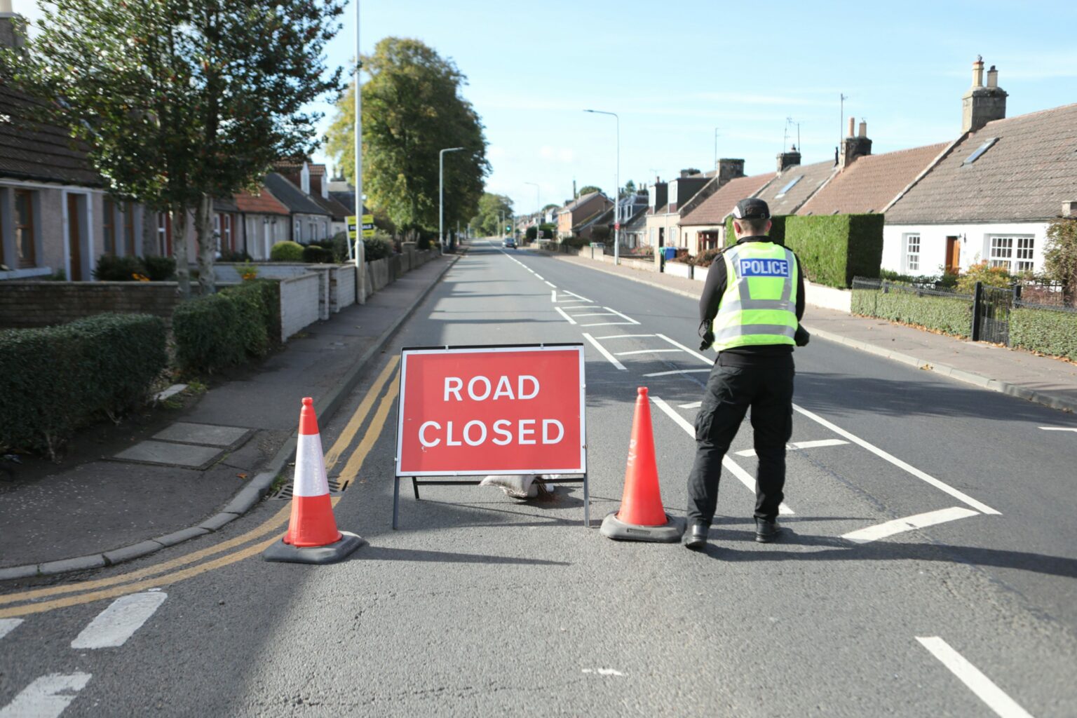 Photos from DC Thomson/the Courier here. It was at the Cupar end of the village, and the A-road turns into a very long straight on leaving the village, as the photos suggest, but don't show properly. The third photo is from the other end of the village obviously stopping traffic from going through to the accident site at the far end of the village (and too big to display on here).